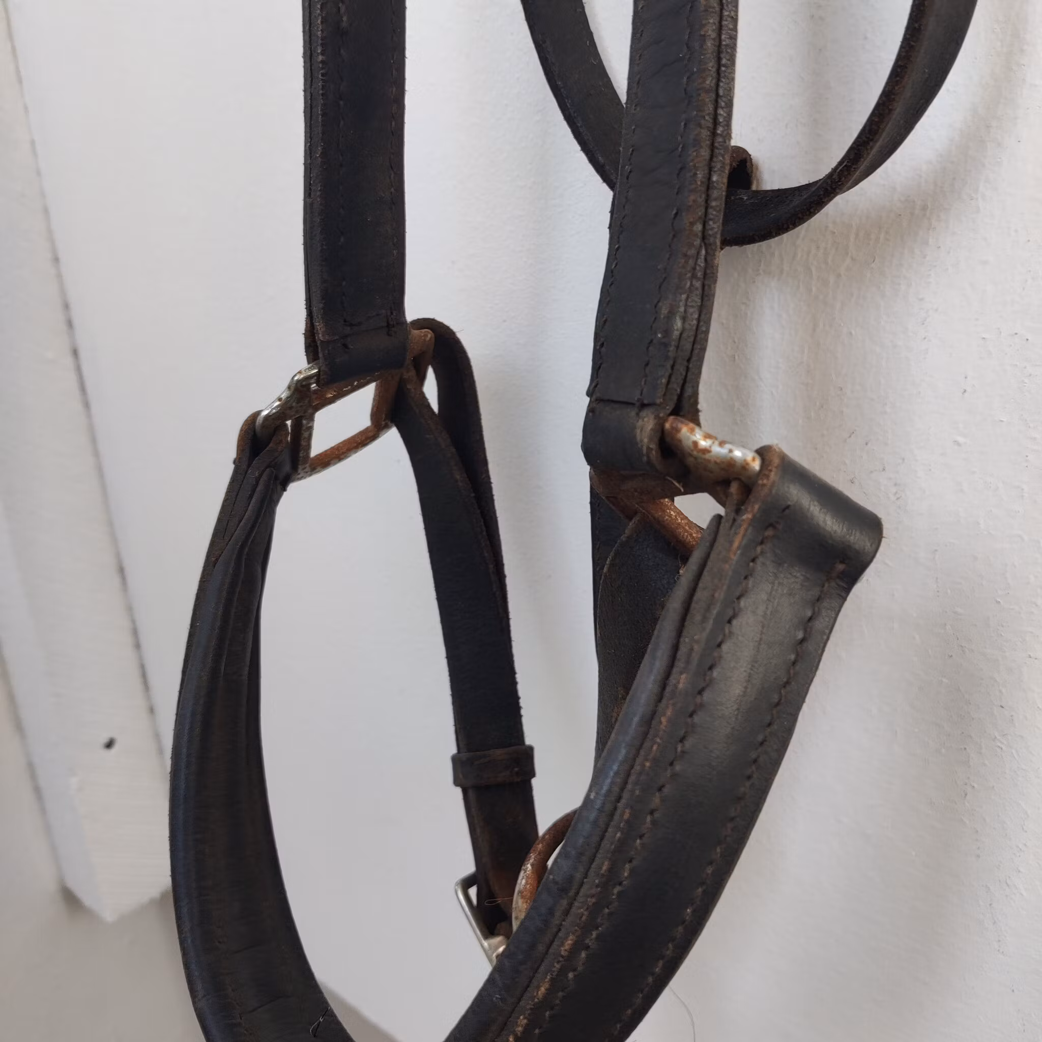 Svart lädergrimma Fairfield FULL 100 kr Grimma i väl använt skick. Rost finns på spännen. I lager. Lägg i korgen Lagersaldo: 1 Artikelnummer: 174.19 Dela Information Grimma i väl använt skick. Rost finns på spännen.