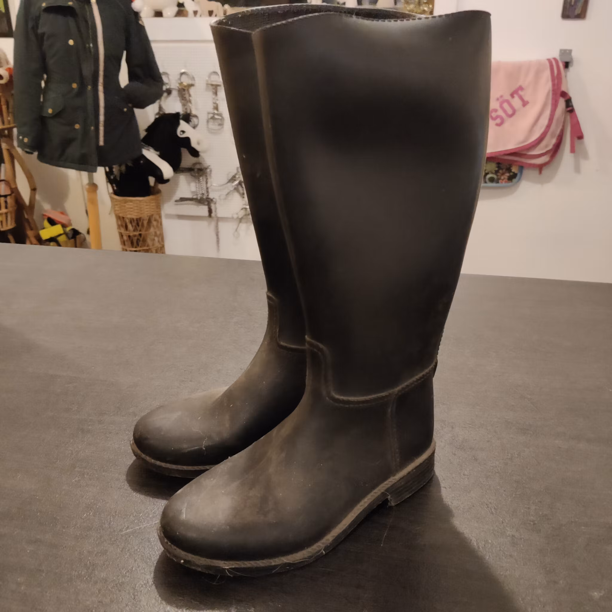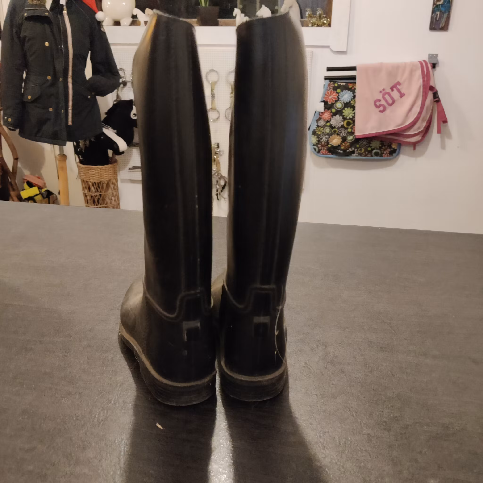 Svarta gummiridstövlar strl 29 50 kr Ridstövlar i väl använt skick. I lager. Lägg i korgen Lagersaldo: 1 Artikelnummer: 38.39 Dela Information Ridstövlar i väl använt skick.